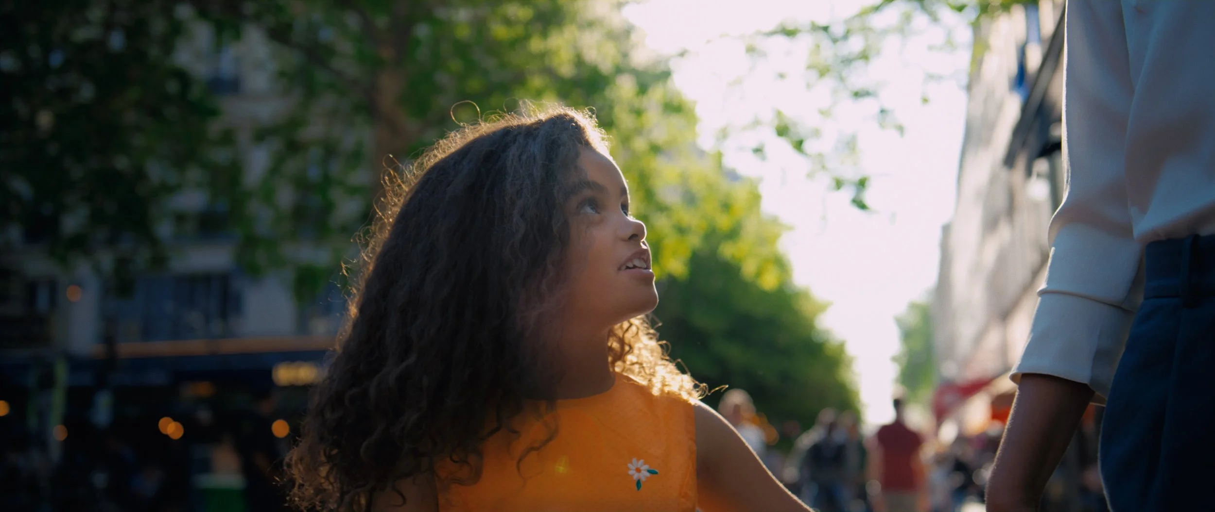 La vidéo s'ouvre sur une scène empreinte de douceur, capturée en fin de journée, lorsque la lumière chaude et dorée du crépuscule enveloppe les rues de Paris. Une maman, au visage serein, marche main dans la main avec son enfant à travers les ruelles bordant la célèbre Bibliothèque Pompidou. L’ambiance est calme, l'agitation parisienne s’atténuant à mesure que le soleil se couche.